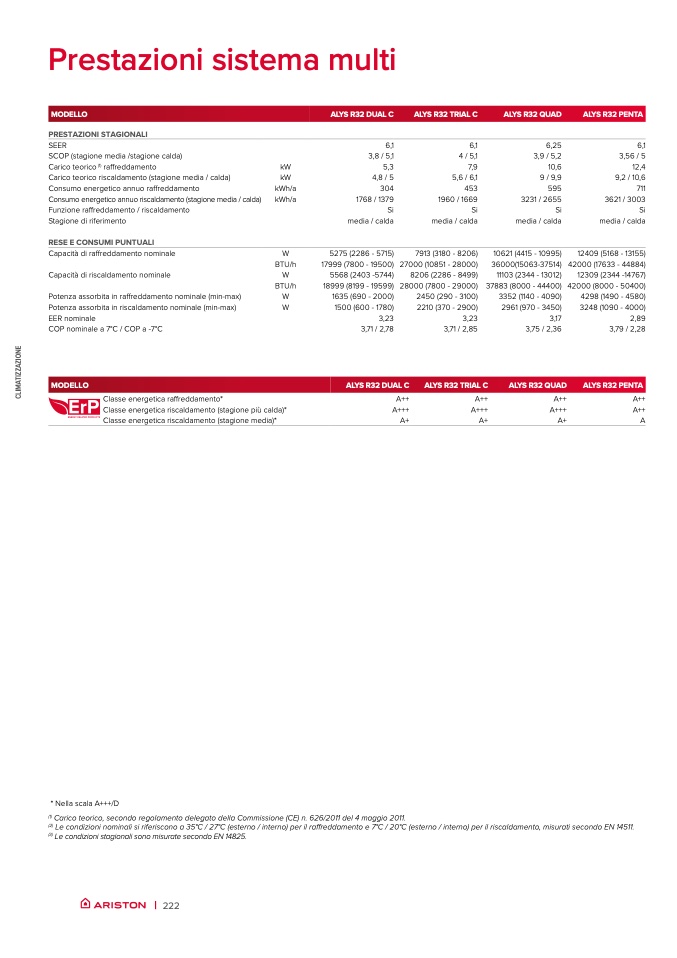 Le condizioni stagionali sono misurate secondo EN 14825.