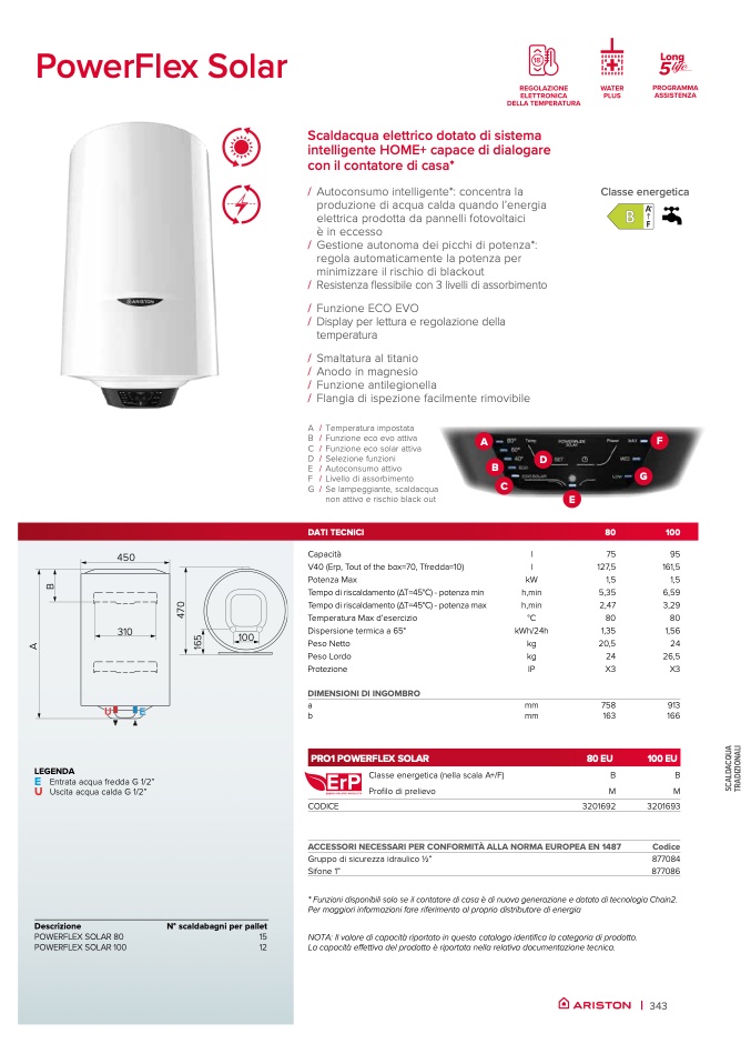 NOTA: Il valore di capacità riportato in questo catalogo identifica la categoria di prodotto.