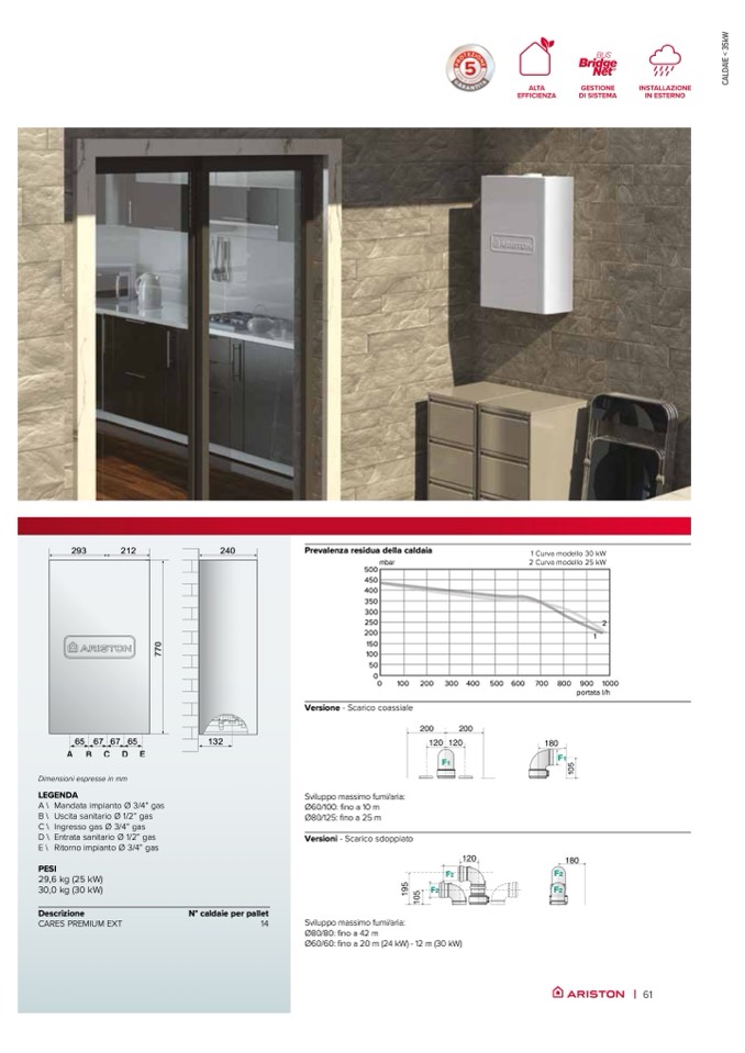 Ø60/60: fino a 20 m (24 kW) - 12 m (30 kW)