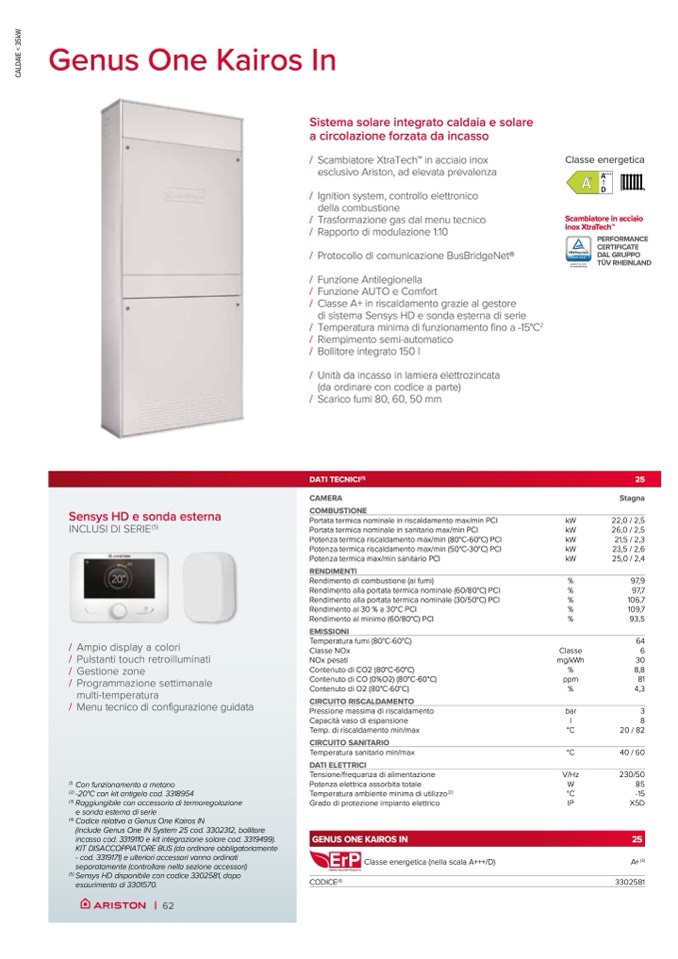 incasso cod. 3319110 e kit integrazione solare cod. 3319499).
