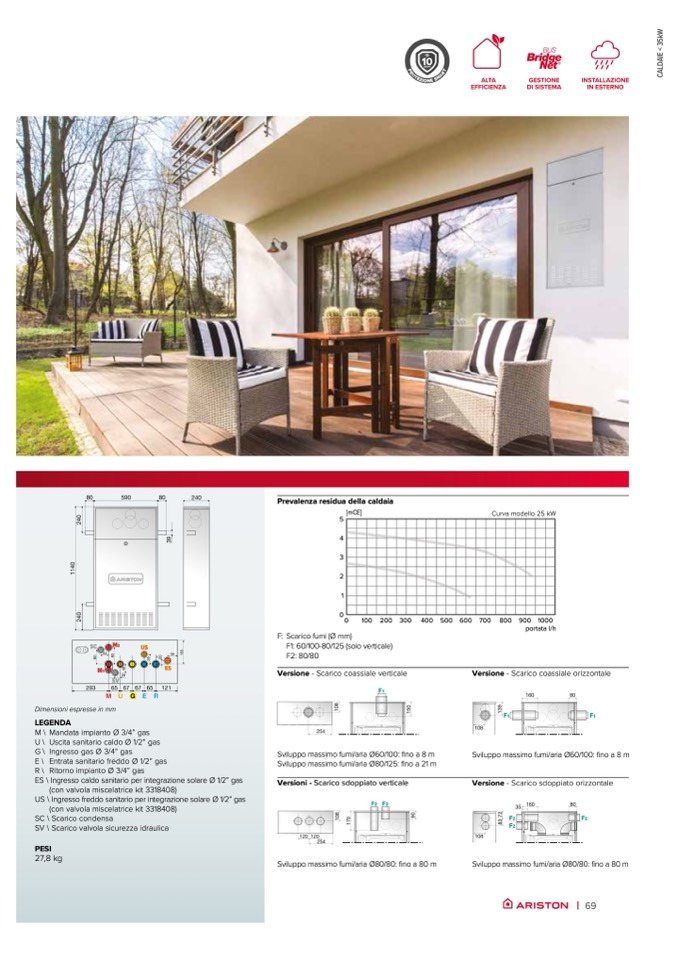 Sviluppo massimo fumi/aria Ø60/100: fino a 8 m
