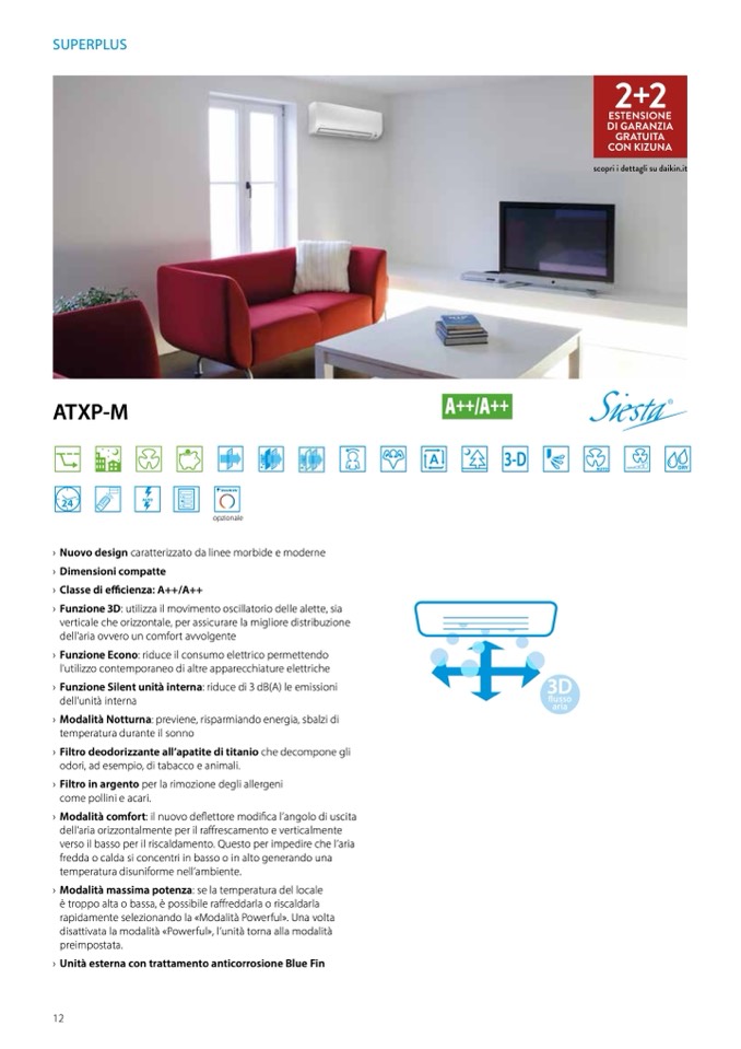 › Funzione Silent unità interna: riduce di 3 dB(A) le emissioni