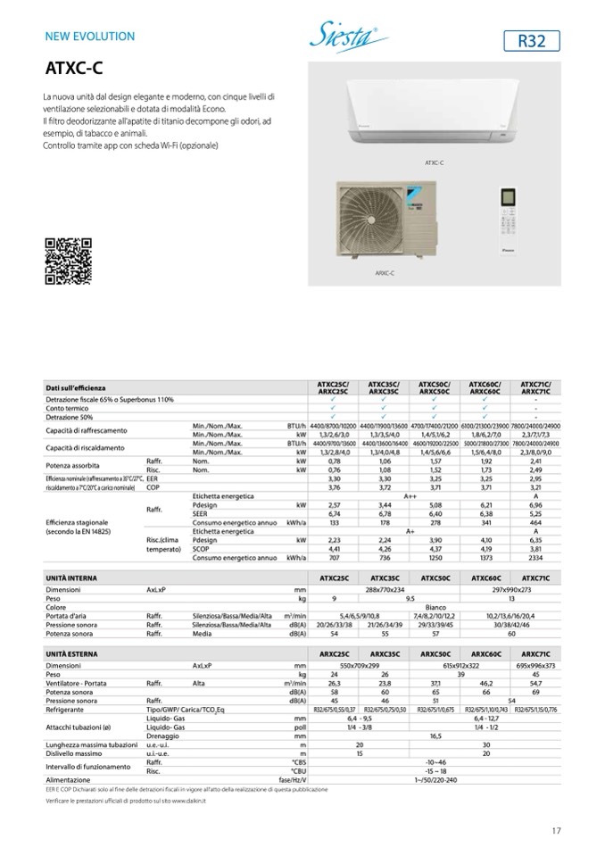 Verificare le prestazioni ufficiali di prodotto sul sito www.daikin.it