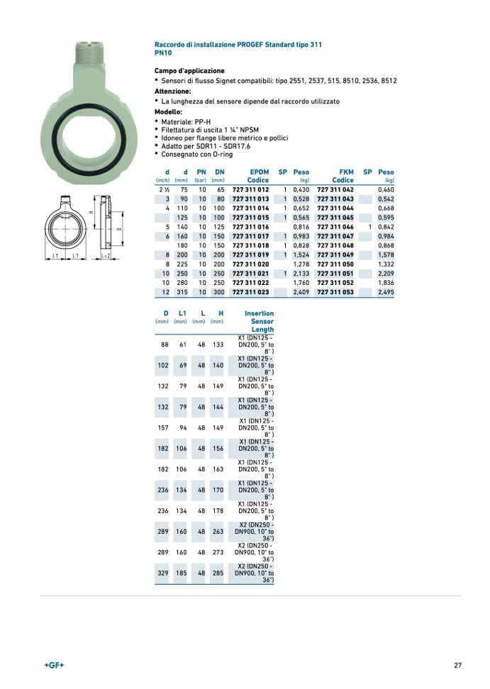 • La lunghezza del sensore dipende dal raccordo utilizzat