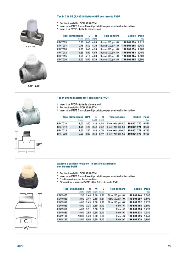 • Fino a 8 in. - inserto PVDF, oltre 8 in. - inserto PV