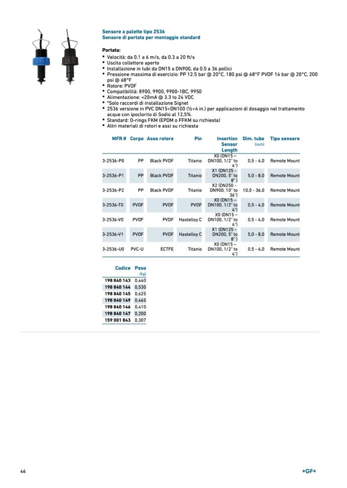 Sensore di portata per montaggio standar