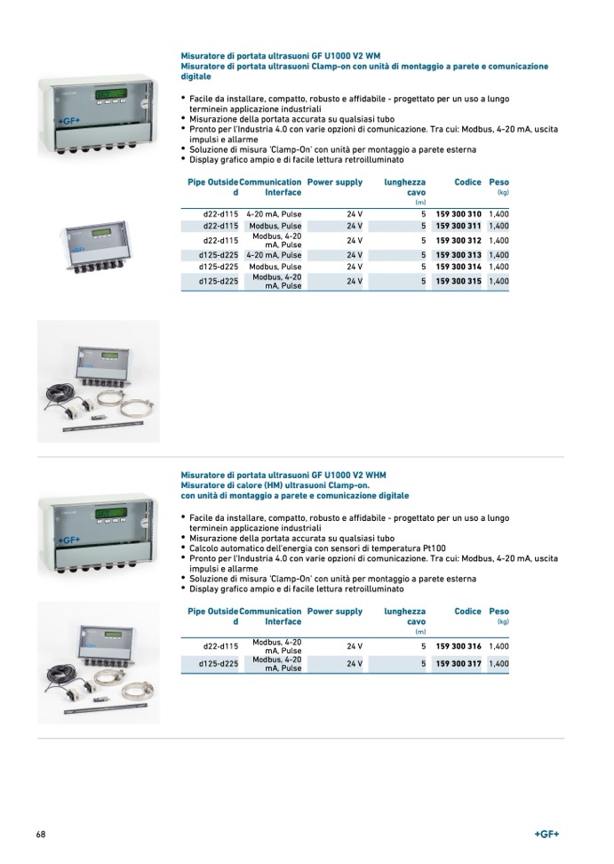Misuratore di portata ultrasuoni GF U1000 V2 WM