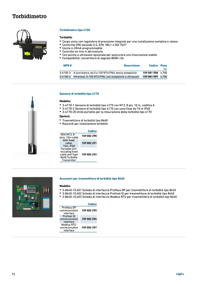 Accessori per trasmettitore di torbidità tipo 8640