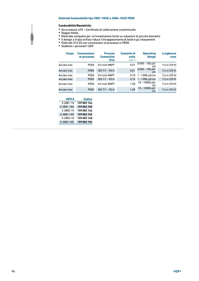 Elettrodi Conducibilità tipo 2881-1K(D) a 2884-1K(D) PEEK
