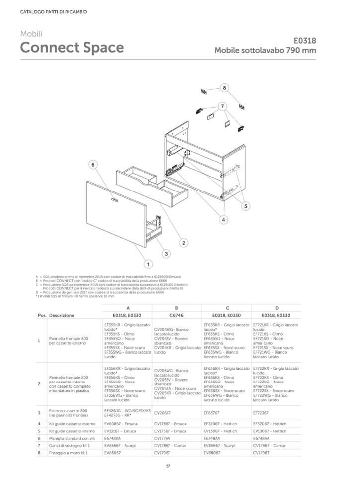C = Produzione SQS da novembre 2015 con codice di tracciabilità successivo a 6126500 (Hettich)