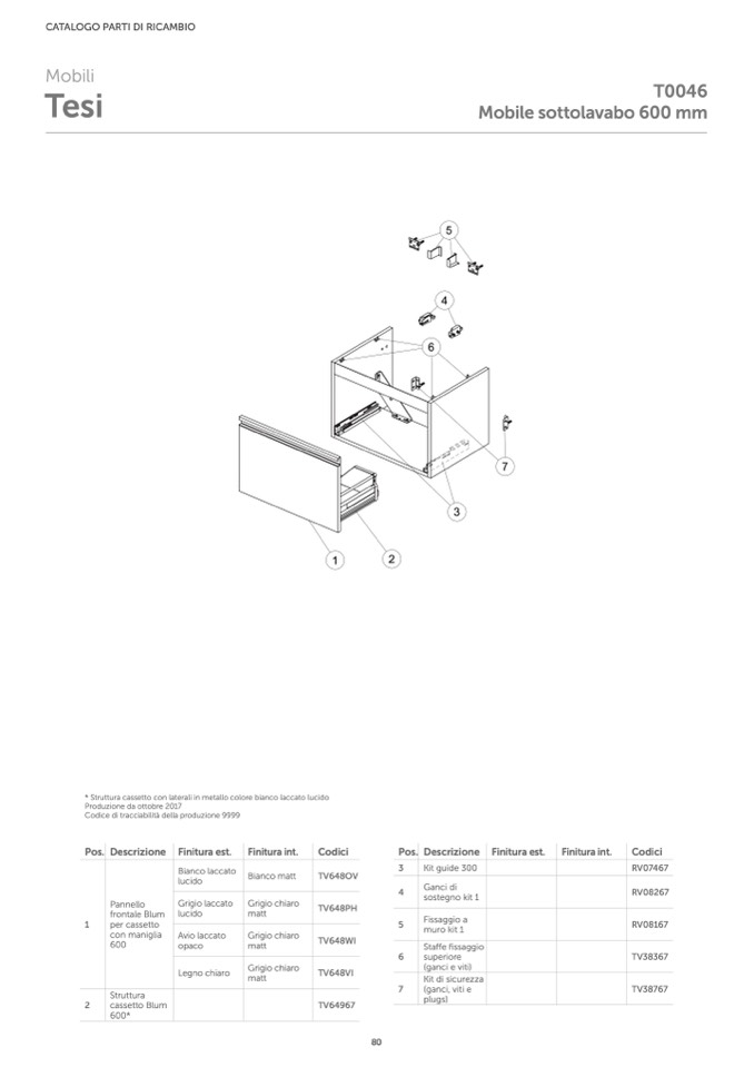 * Struttura cassetto con laterali in metallo colore bianco laccato lucido