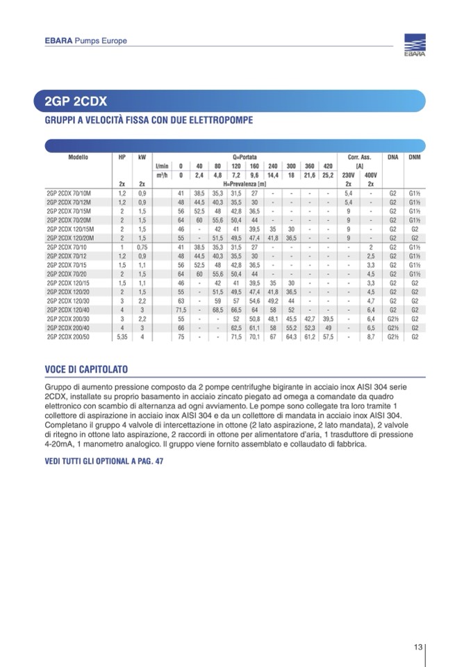 4-20mA, 1 manometro analogico. Il gruppo viene fornito assemblato e collaudato di fabbrica.