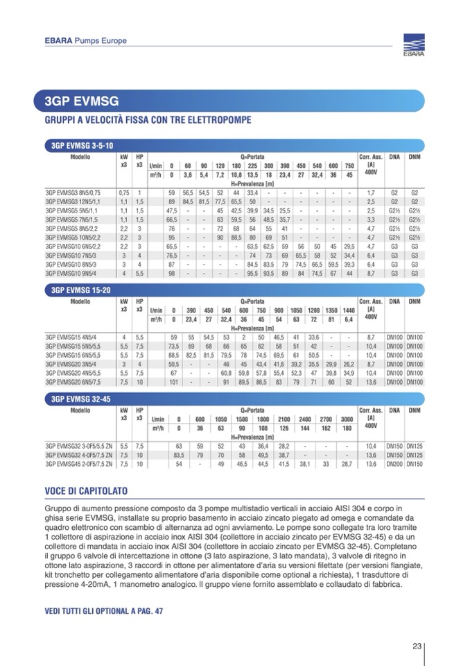 1 collettore di aspirazione in acciaio inox AISI 304 (collettore in acciaio zincato per EVMSG 32-45) e da un