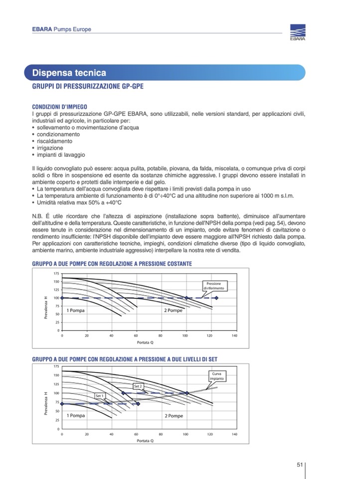 I gruppi di pressurizzazione GP-GPE EBARA, sono utilizzabili, nelle versioni standard, per applicazioni civili,