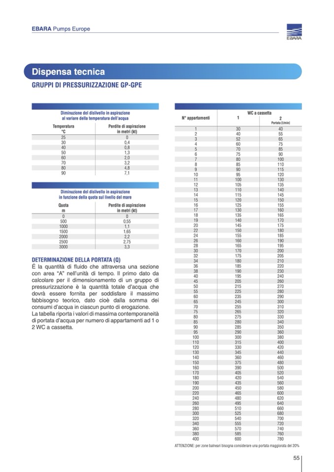 ATTENZIONE: per zone balneari bisogna considerare una portata maggiorata del 20%