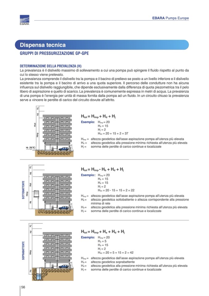 La prevalenza comprende il dislivello tra la pompa e il bacino di prelievo se posto a un livello inferiore e il dislivello