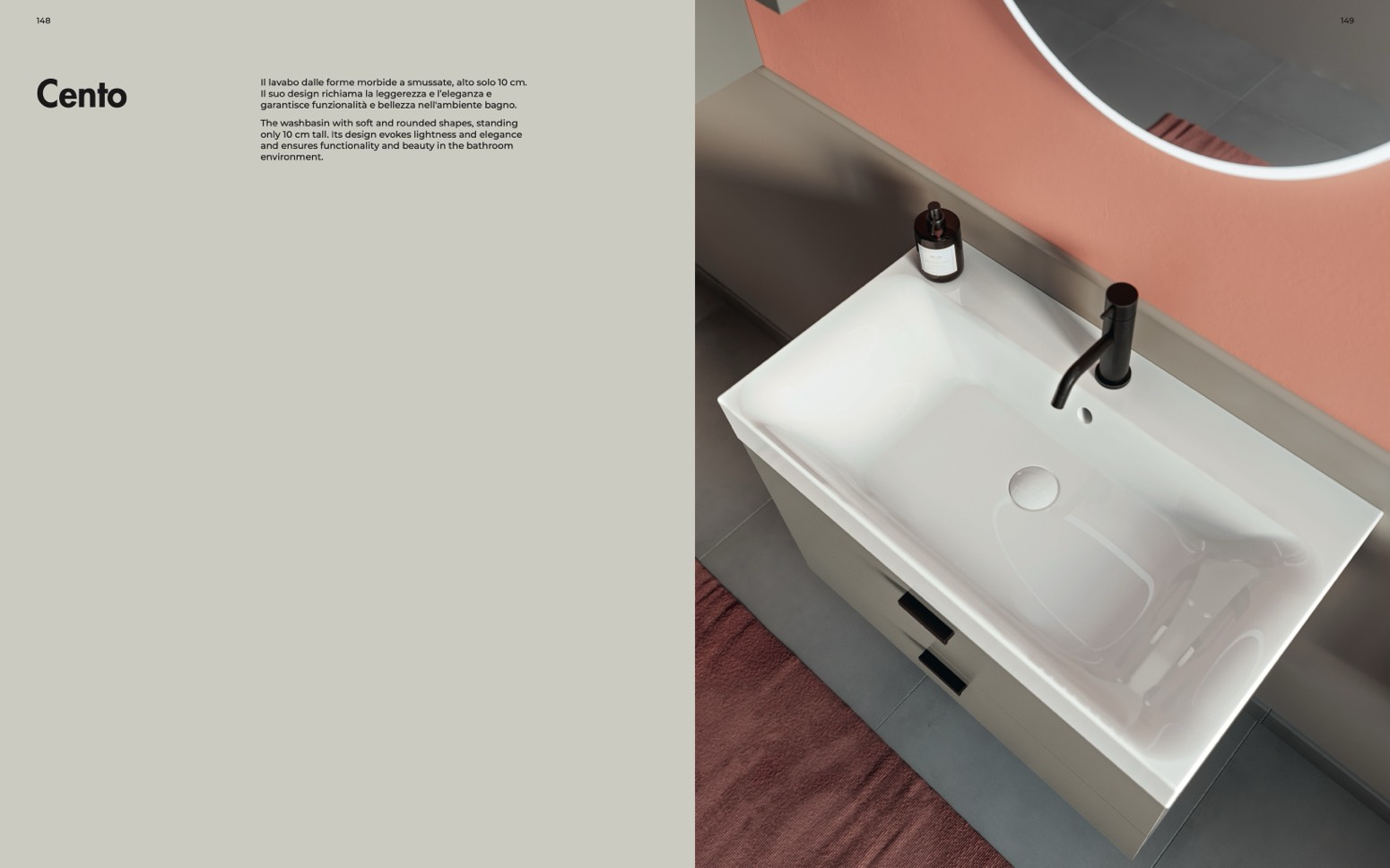 Il lavabo dalle forme morbide a smussate, alto solo 10 cm.