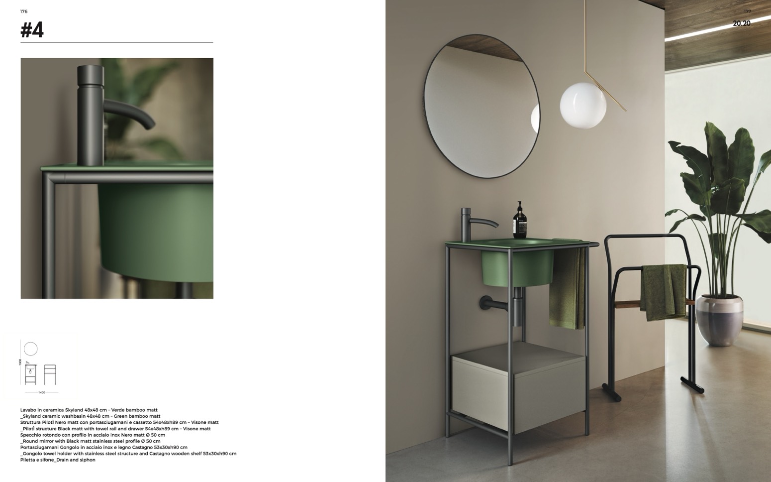 Lavabo in ceramica Skyland 48x48 cm – Verde bamboo matt