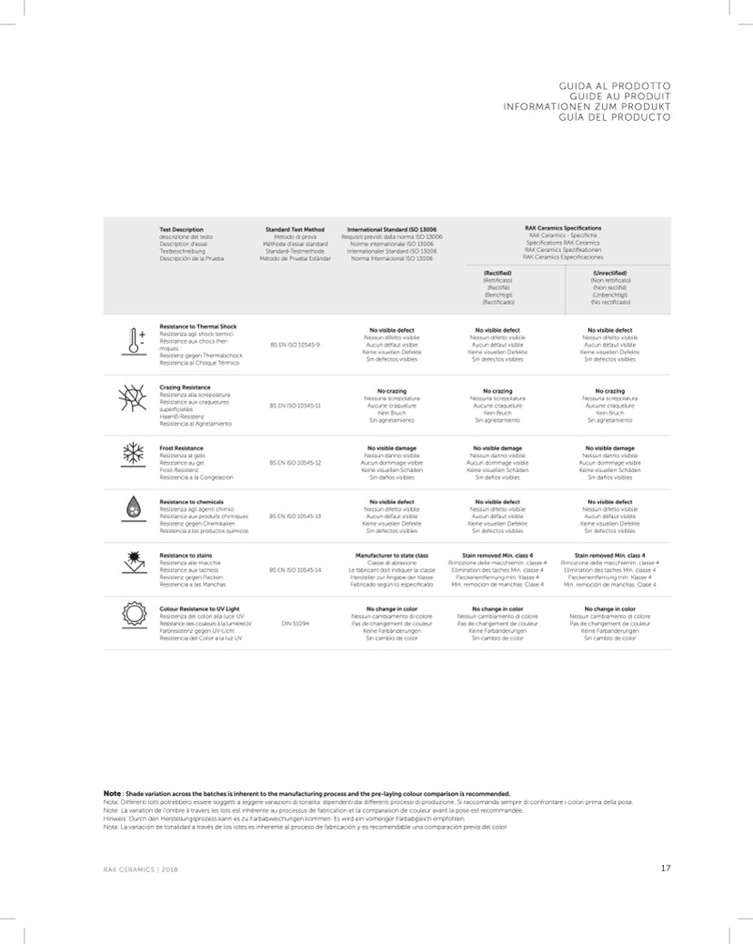 RAK Ceramics - Specifiche
