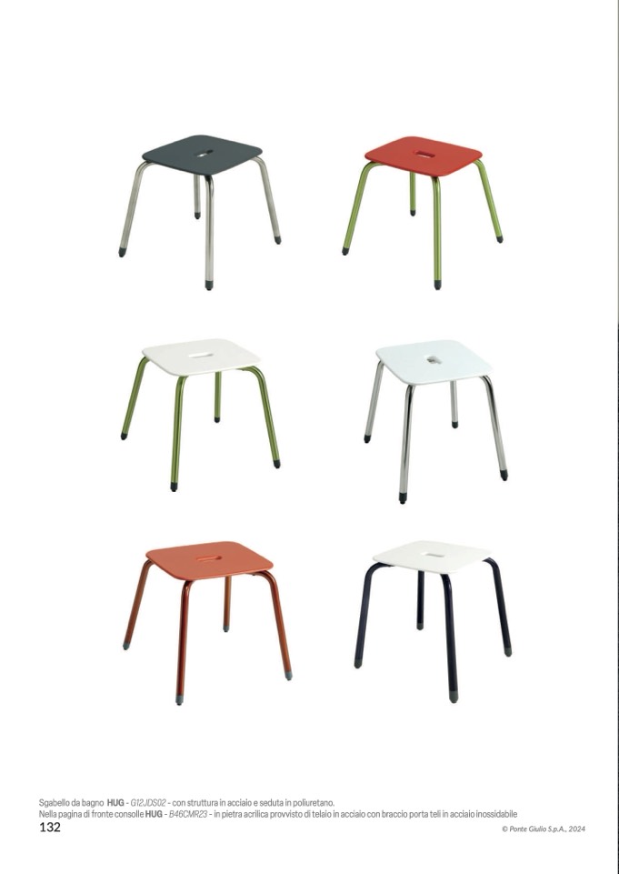 Sgabello da bagno HUG - G12JDS02 - con struttura in acciaio e seduta in poliuretano.