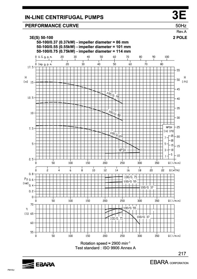 50-100/0.75 (0.75kW) - impeller diameter = 114 mm