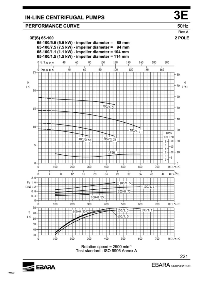 65-100/1.5 (1.5 kW) - impeller diameter = 114 mm