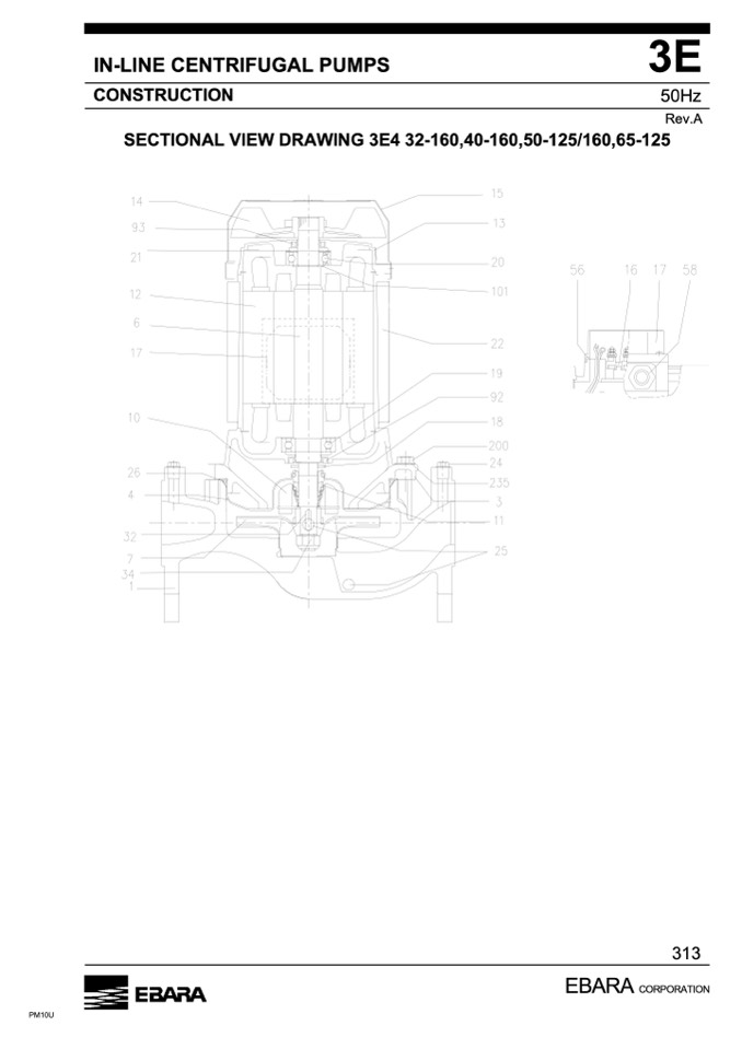 SECTIONAL VIEW DRAWING 3E4 32-160,40-160,50-125/160,65-125