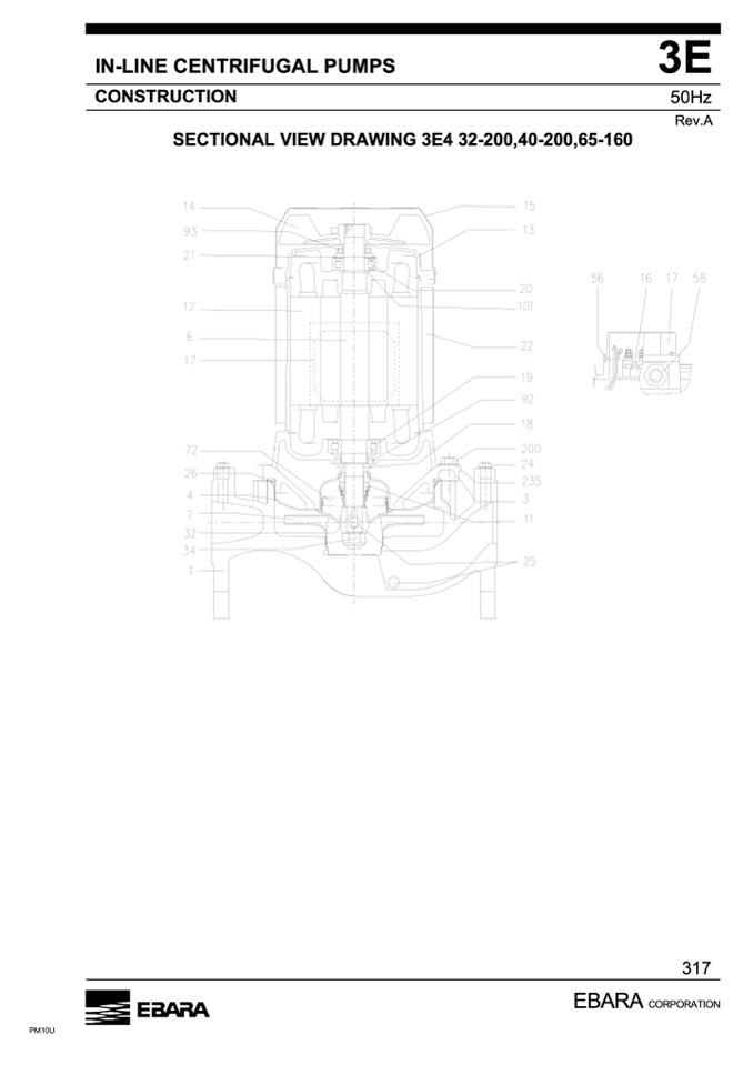 SECTIONAL VIEW DRAWING 3E4 32-200,40-200,65-160