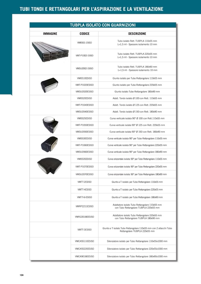 Tubo isolato Rett. TUBPLA 180x90 mm