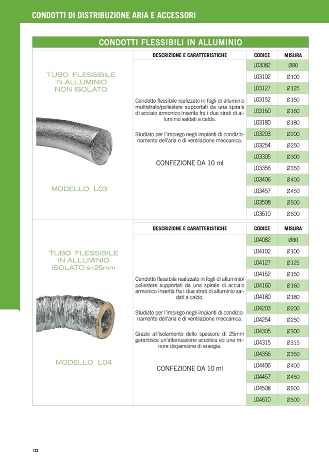 Condotto flessibile realizzato in fogli di alluminio/