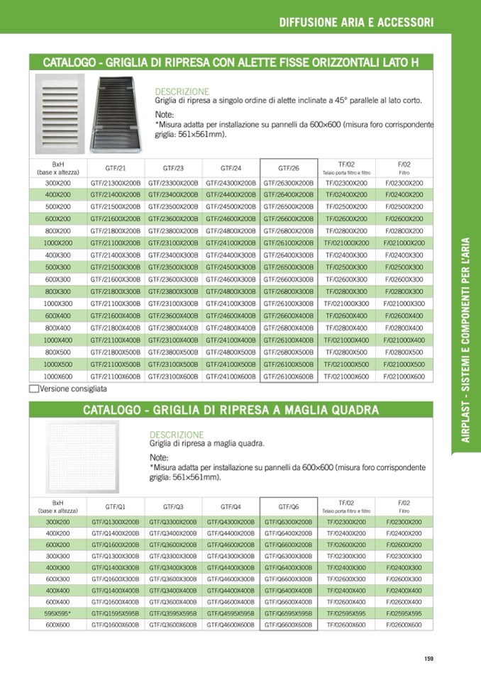 Griglia di ripresa a singolo ordine di alette inclinate a 45° parallele al lato corto.