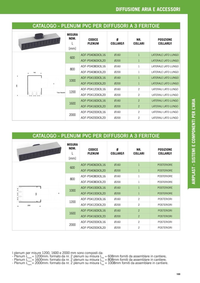I plenum per misure 1200, 1600 e 2000 mm sono composti da: