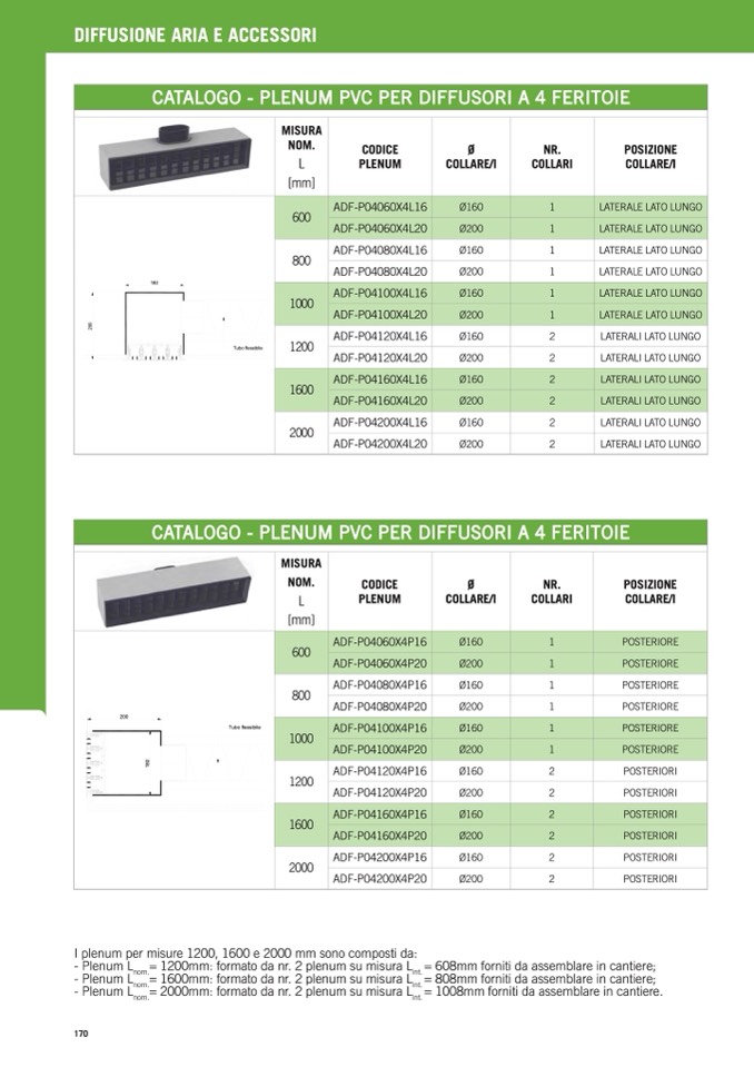 I plenum per misure 1200, 1600 e 2000 mm sono composti da: