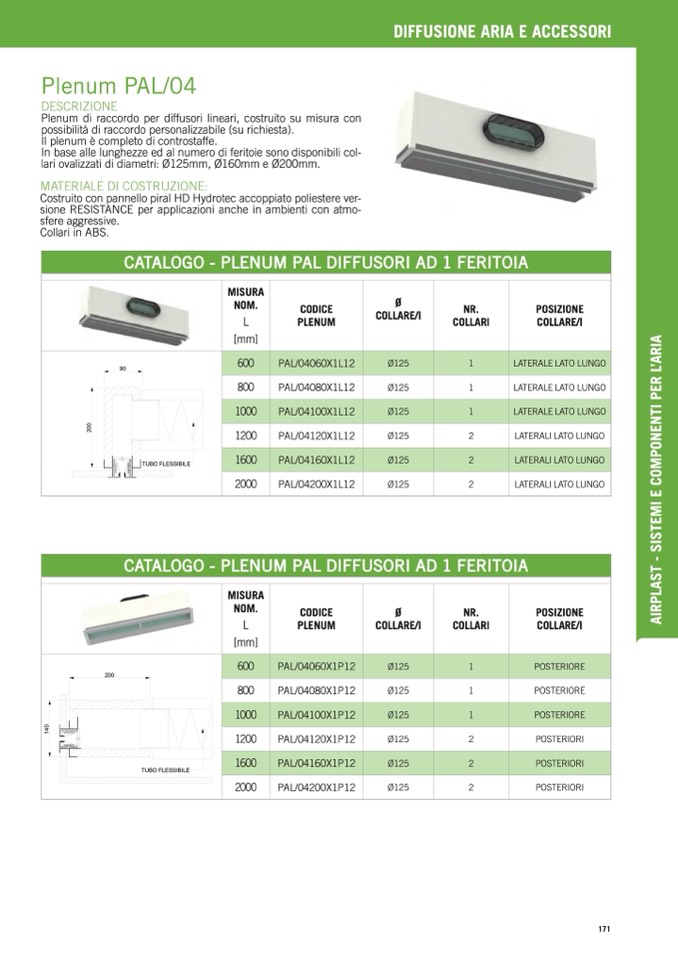 Plenum di raccordo per diffusori lineari, costruito su misura con