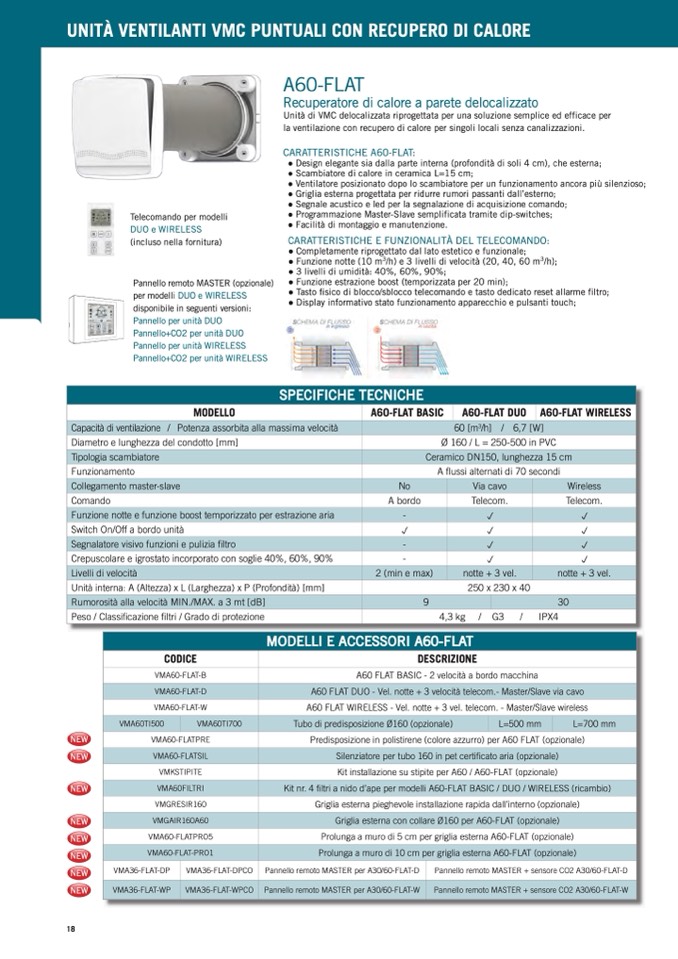 la ventilazione con recupero di calore per singoli locali senza canalizzazioni.