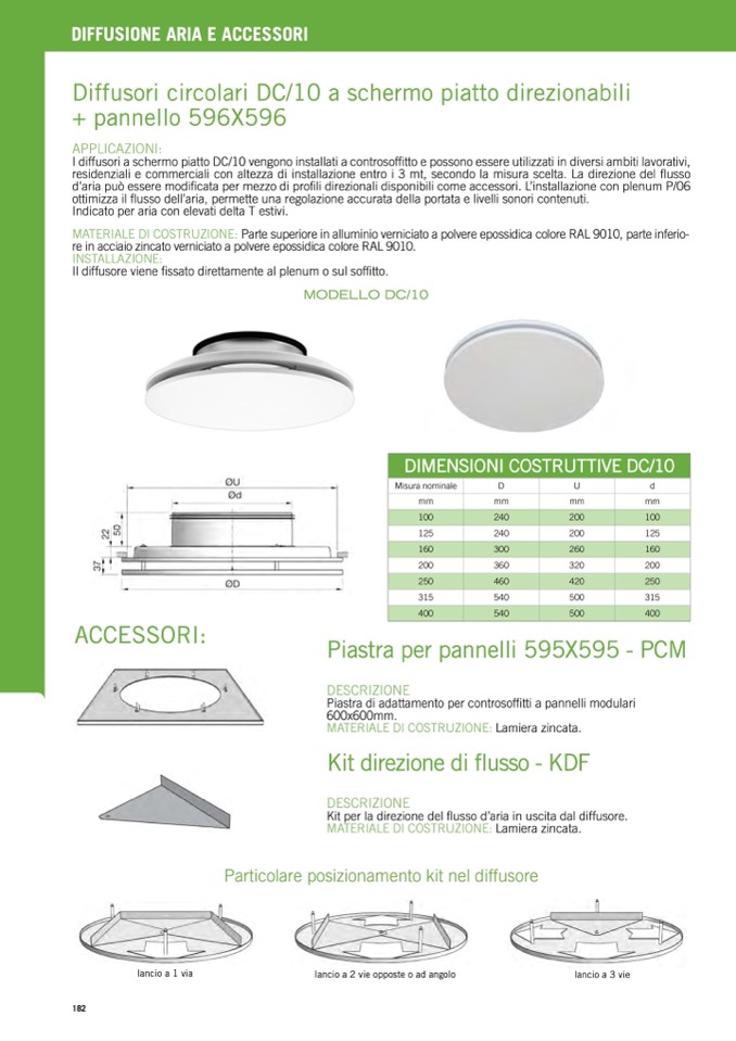 I diffusori a schermo piatto DC/10 vengono installati a controsoffitto e possono essere utilizzati in diversi ambiti lavorativi,