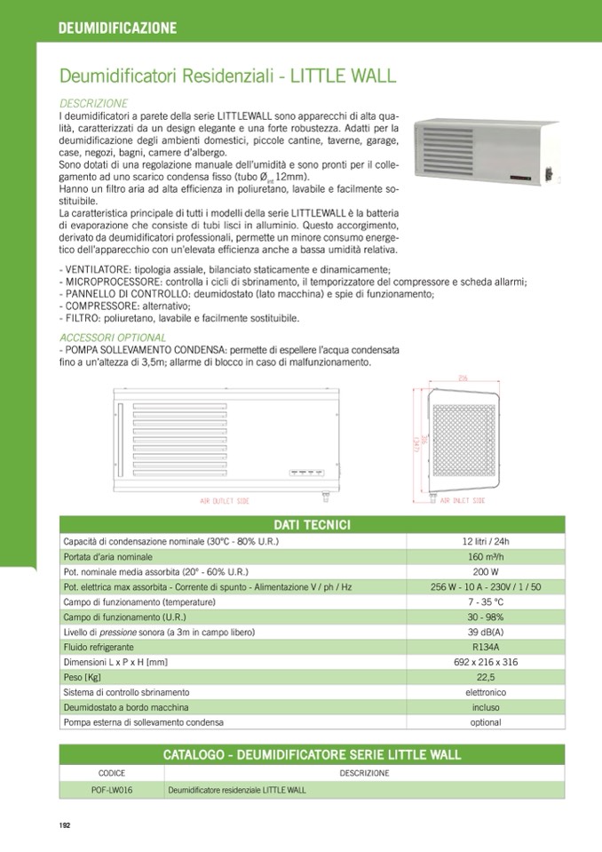 I deumidificatori a parete della serie LITTLEWALL sono apparecchi di alta qua-
