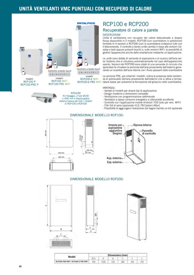 fornibile in 4 versioni e RCP200 (con lo scambiatore entalpico) tutti con