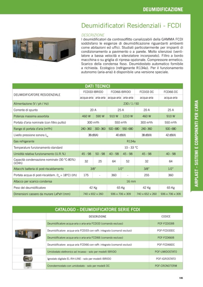 Deumidificatore acqua-aria o aria-aria FCDI66 (comando escluso)