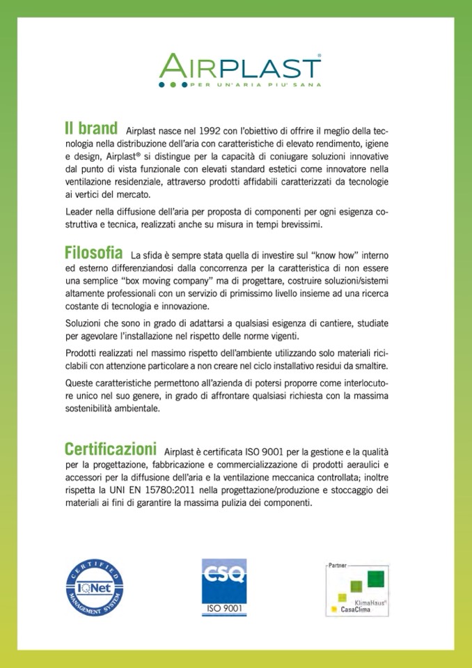 nologia nella distribuzione dell’aria con caratteristiche di elevato rendimento, igiene