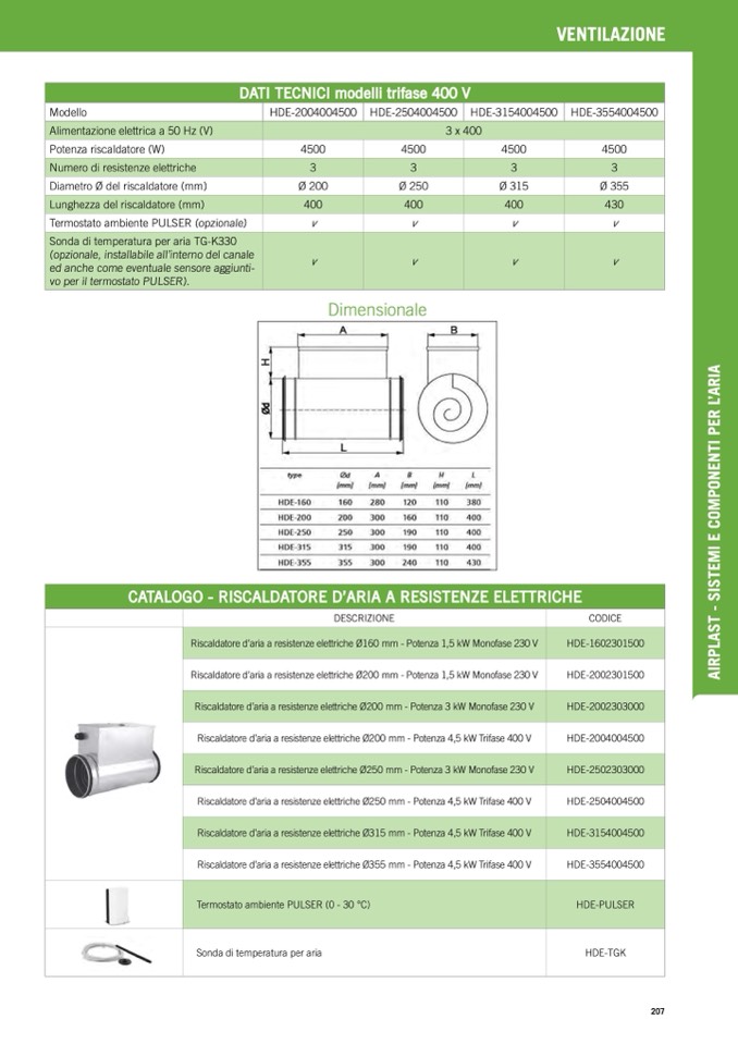 Riscaldatore d’aria a resistenze elettriche Ø200 mm - Potenza 4,5 kW Trifase 400 V