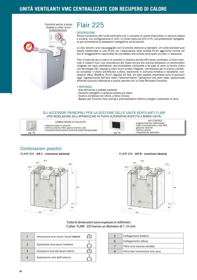 Nuova concezione dell’unità ventilante con il recupero di calore disponibile in versione destra
