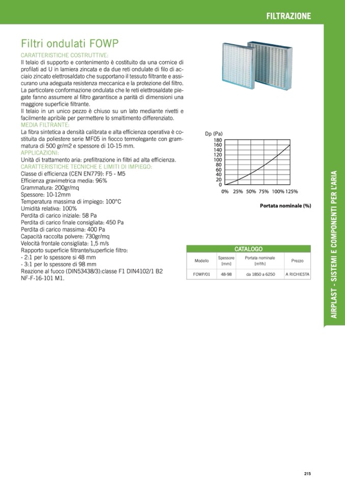 Unità di trattamento aria: prefiltrazione in filtri ad alta efficienza.