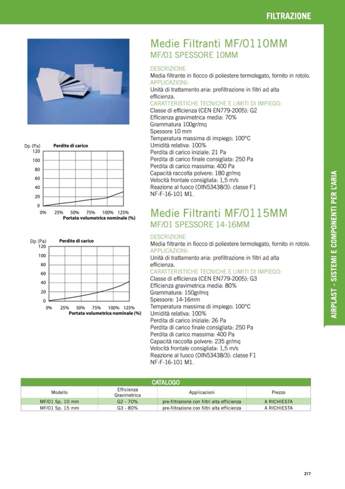 Media filtrante in fiocco di poliestere termolegato, fornito in rotolo.