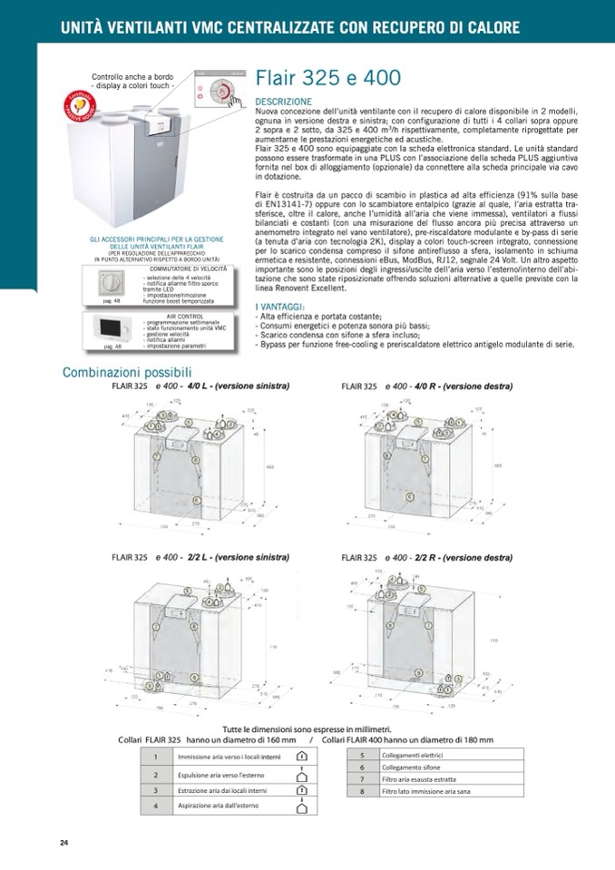 Flair è costruita da un pacco di scambio in plastica ad alta efficienza (91% sulla base