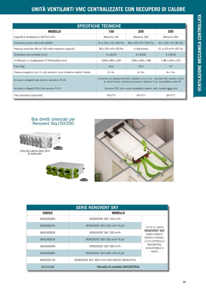 Comando con display AirControl, selettore a 3 o 4 vie + led stato filtri, sensore umidi-