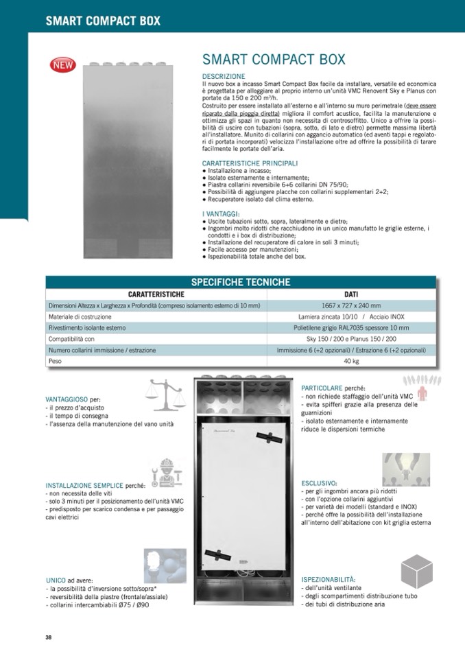 è progettata per alloggiare al proprio interno un’unità VMC Renovent Sky e Planus con