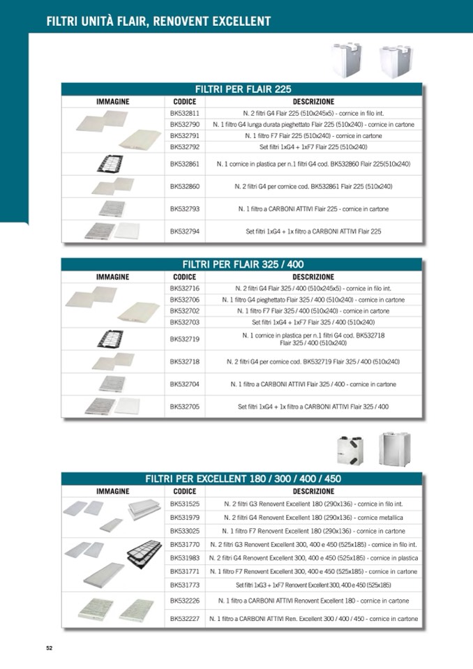 N. 2 filtri G3 Renovent Excellent 180 (290x136) - cornice in filo int.