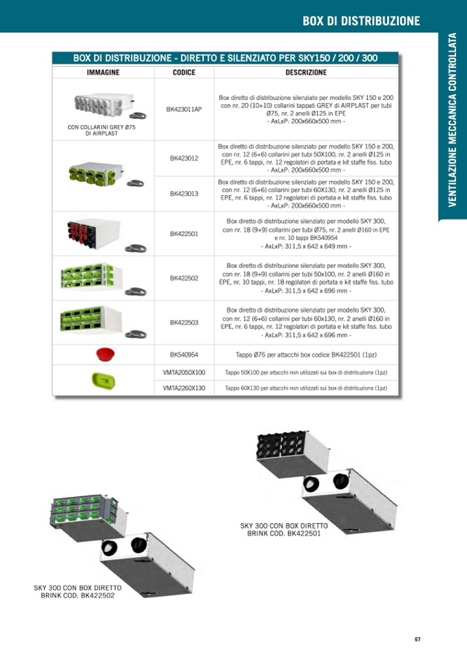 Box diretto di distribuzione silenziato per modello SKY 150 e 200,