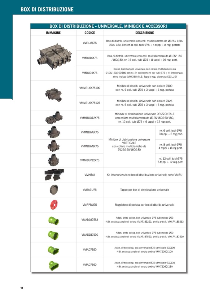 /160/180, nr. 16 coll. tubi Ø75 + 8 tappi + 16 reg. port.